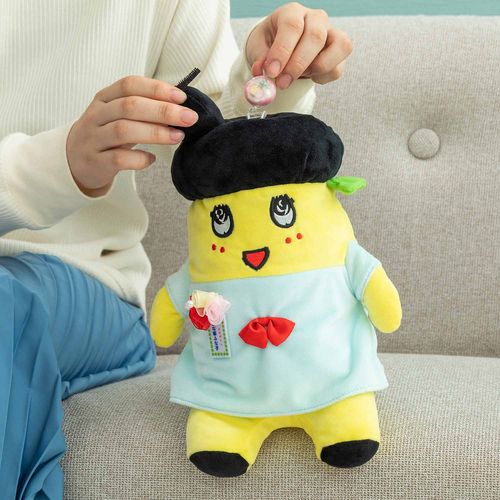ふな子の引っ掛けぬいぐるみはテーブルなどのフチにかけられるぬいぐるみです♪頭の中にアメが入れられる仕様です!