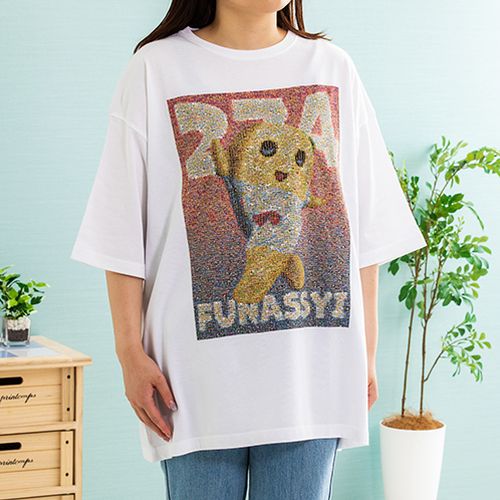 ふなっしー降臨10周年モザイクアートが大きくプリントされたビッグシルエットのTシャツです。