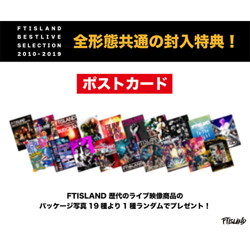 FTISLAND歴代のライブ映像商品のパッケージ写真19種より1種ランダムでプレゼント。