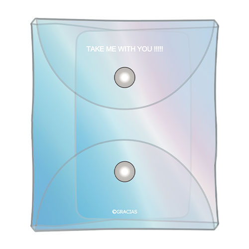 5枚まとめて収納できる、オーロラカラーのクリアケース付き