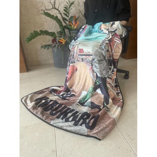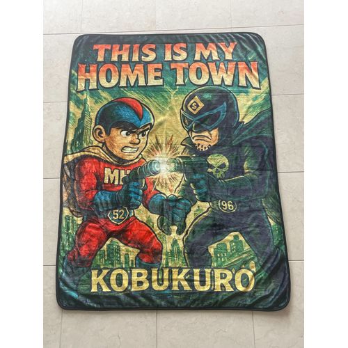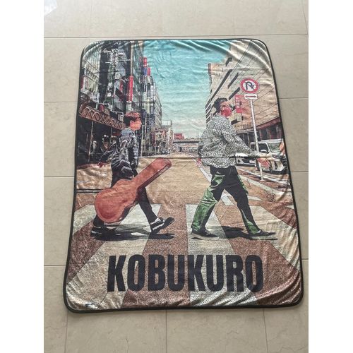 ツアーグッズのデザインにも使われている、コブクロの二人がHEROに扮したキャラクターデザインと、堺東の横断歩道を渡っているフォトデザインを裏表にプリントしたブランケットです。