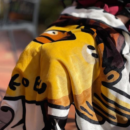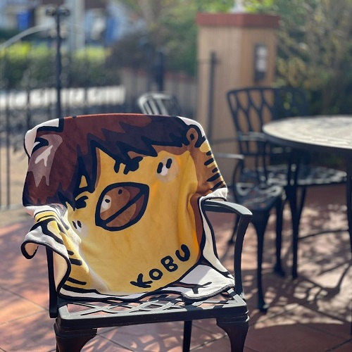 小渕健太郎が書下したかわいいヒヨKOBUKUROがクォーターサイズのリバーシブルデザインブランケットになりました。フワフワ、モコモコの生地、ひざ掛け、ストールにぴったりのサイズです。オフィスやお出かけ、アウトドアでも活躍!自家用車に常備するのもおすすめです!!