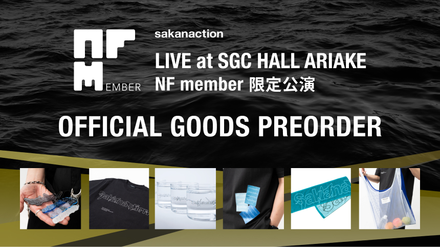 2026年4月18日(土)~19日(日)開催 の「サカナクション LIVE at SGC HALL ARIAKE(NFmember限定公演) 」では、 公演当日のチケットをお持ちのお客様を対象に、グッズが会場で受取可能な会場受取事前予約(プレオーダー)を実施いたします。