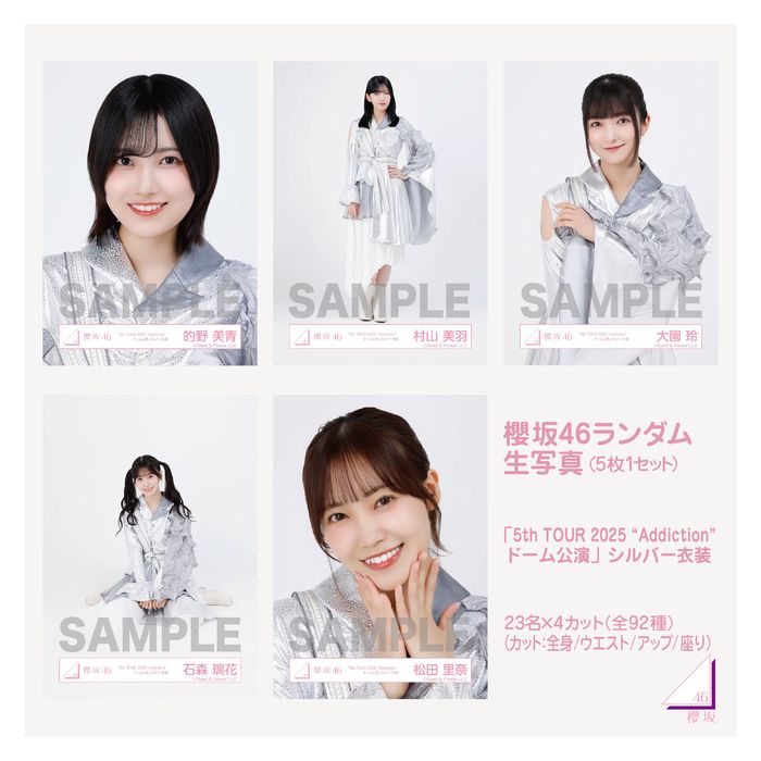 トップ > 【通常配送】ALL ITEMS > 【通常配送】櫻坂46ランダム生写真(5枚1セット)【「5th TOUR 2025 “Addiction” ドーム公演」シルバー衣装】
