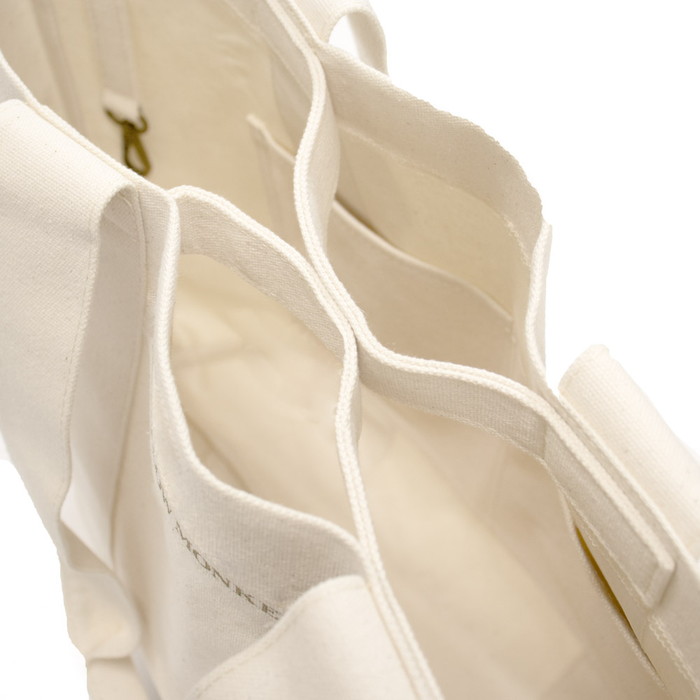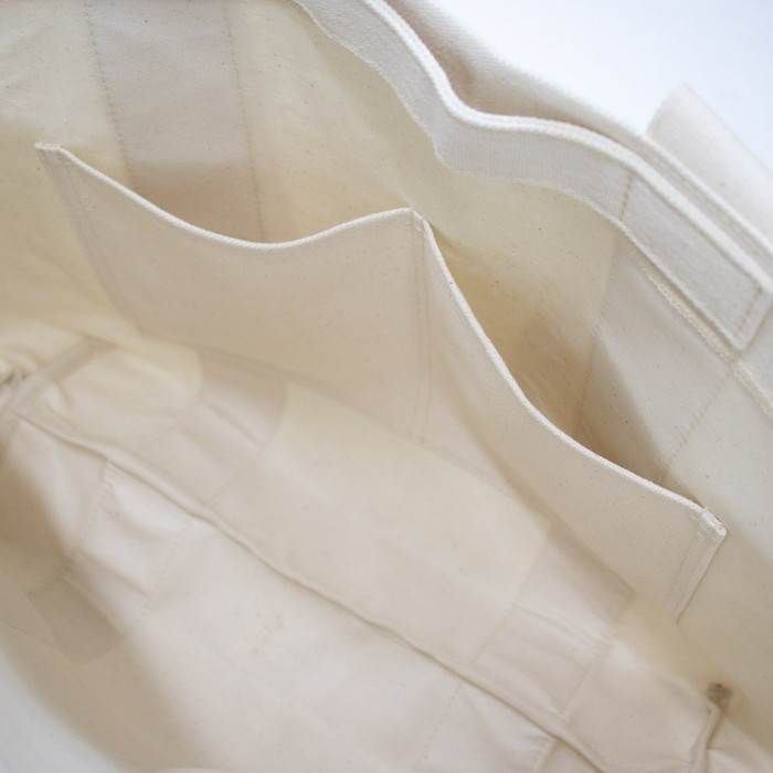 厚みのある帆布を使用し自立するほどの安定感と型崩れがしにくいトートバッグです。