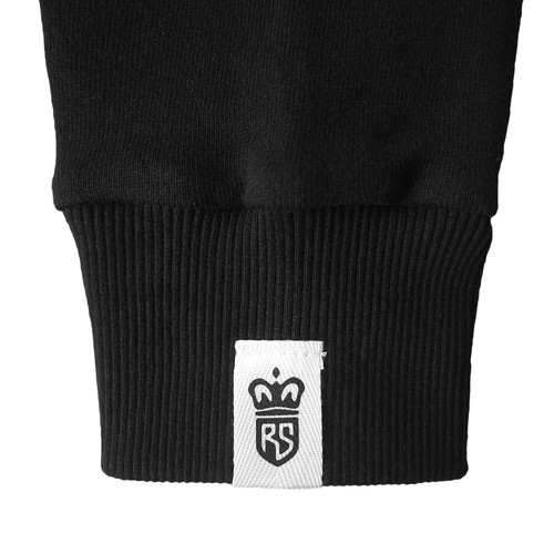 襟元・袖元にはさりげない2つの異なるRSロゴでストリート感を出し、シンプルに見えつつもさりげなくかっこいいパーカーを目指しました。